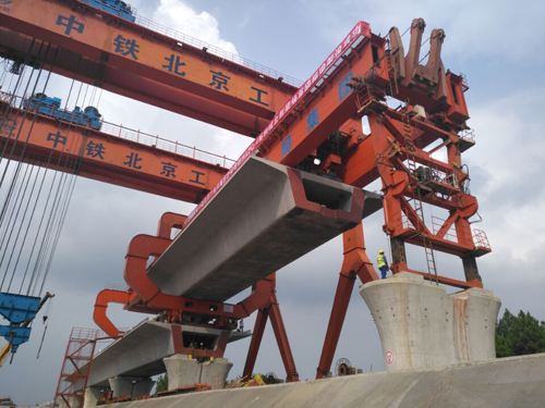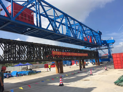 1.2017年8月16日,中鐵北京工程局合安項(xiàng)目桐城北梁場900t架橋機(jī)順利完成首架。