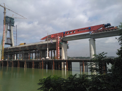 中鐵二十一局路橋公司贛縣梁場負(fù)責(zé)昌贛客專12標(biāo)段,線路全長45公里,需穿越26座隧道,共有531孔箱梁的制運(yùn)架施工任務(wù),針對管段橋隧相連的施工難題,中鐵二十一局采用了我公司的穿隧式運(yùn)架一體機(jī)架設(shè)橋梁,大大節(jié)約了作業(yè)時(shí)間和人工成本。