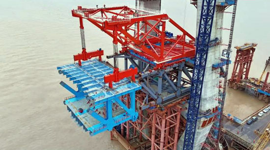 1100t Deck Derrick Crane finished the first lifting in Chongqi Bridge